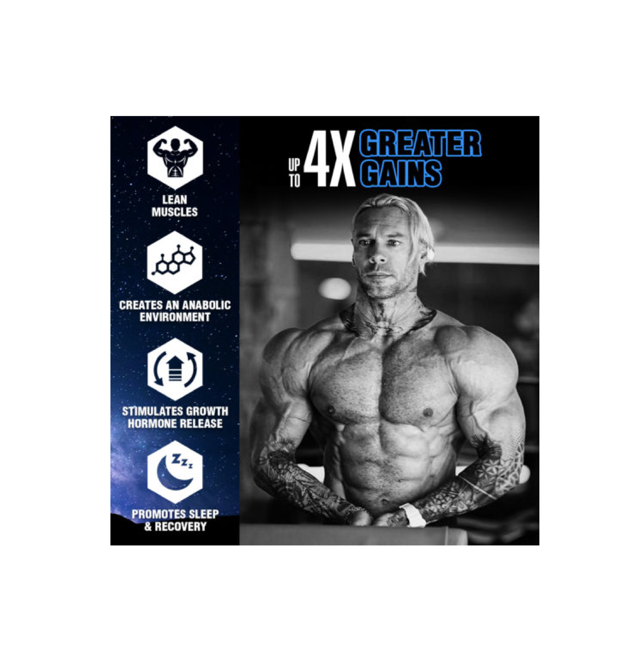- Up to 4X Greater Improvement in Muscle Size when compared to placebo