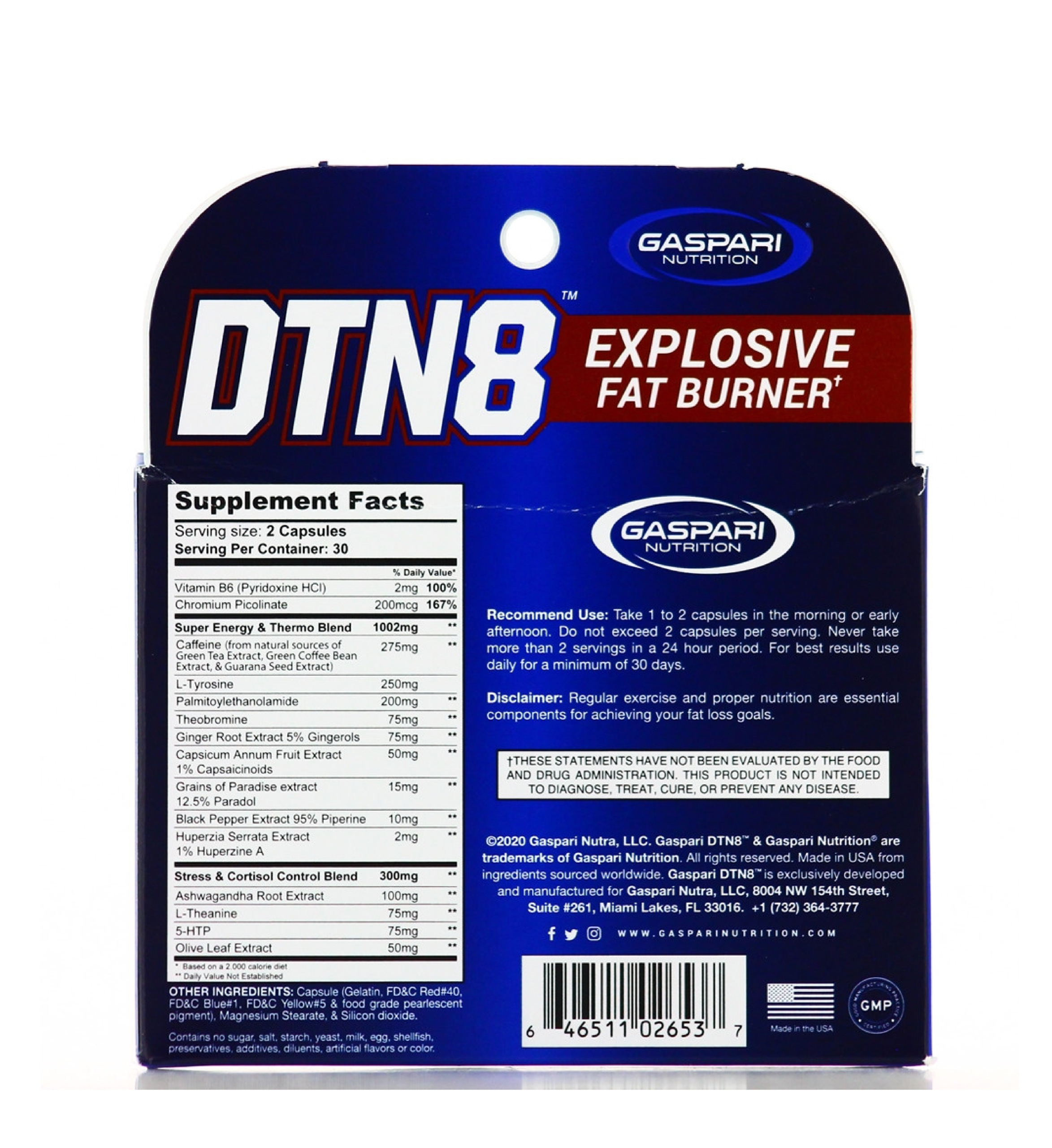 Gaspari finally answers the call for an effective fat burner that, not only incinerates body fat but also covers three other key areas to create the ultimate explosive fat burning and energy experience. First and foremost, I wanted to make a true thermogenic that had every proven ingredient to liberate and incinerate body fat. Then, to fuel your fat-burning workouts, my fat burner also had to give you smooth energy with natural stimulants. Not the edgy anxiety that makes you feel like you’re crawling out of your skin. Next, I wanted to make sure I added ingredients that help with mental focus to help you concentrate in the gym. And finally, because stimulants and thermogenics can increase cortisol (which is catabolic), I wanted to include proven ingredients that support the adrenal glands to help keep cortisol levels in check. New DTN8 accomplishes all that and more. With the most powerful array of synergistic fat burning and energy components available today, DTN8 is the ultimate fat destroyer you’ve been waiting for.