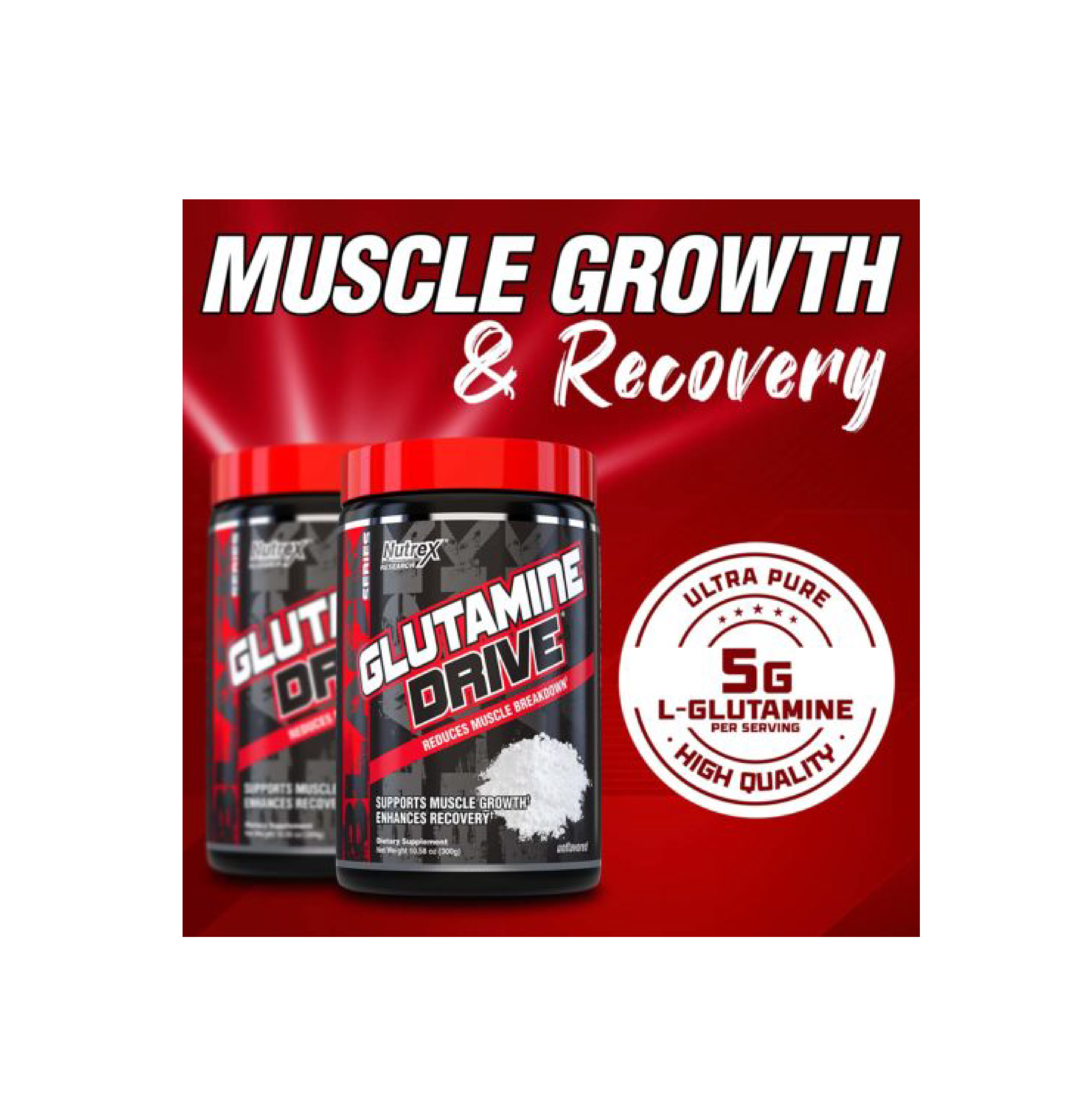 Supplementing with extra L-Glutamine helps maintain high muscular Glutamine levels which in turn speeds up muscle tissue repair and growth. Daily consumption of L-Glutamine helps maximize your muscle-building results. GLUTAMINE DRIVE® consists of pure L-Glutamine. It is unflavored and can easily be added to any beverage of your choice. Adding a scoop of GLUTAMINE DRIVE® to your post-workout drink or meal will greatly enhance muscle repair and primes your body for faster muscle tissue growth.
