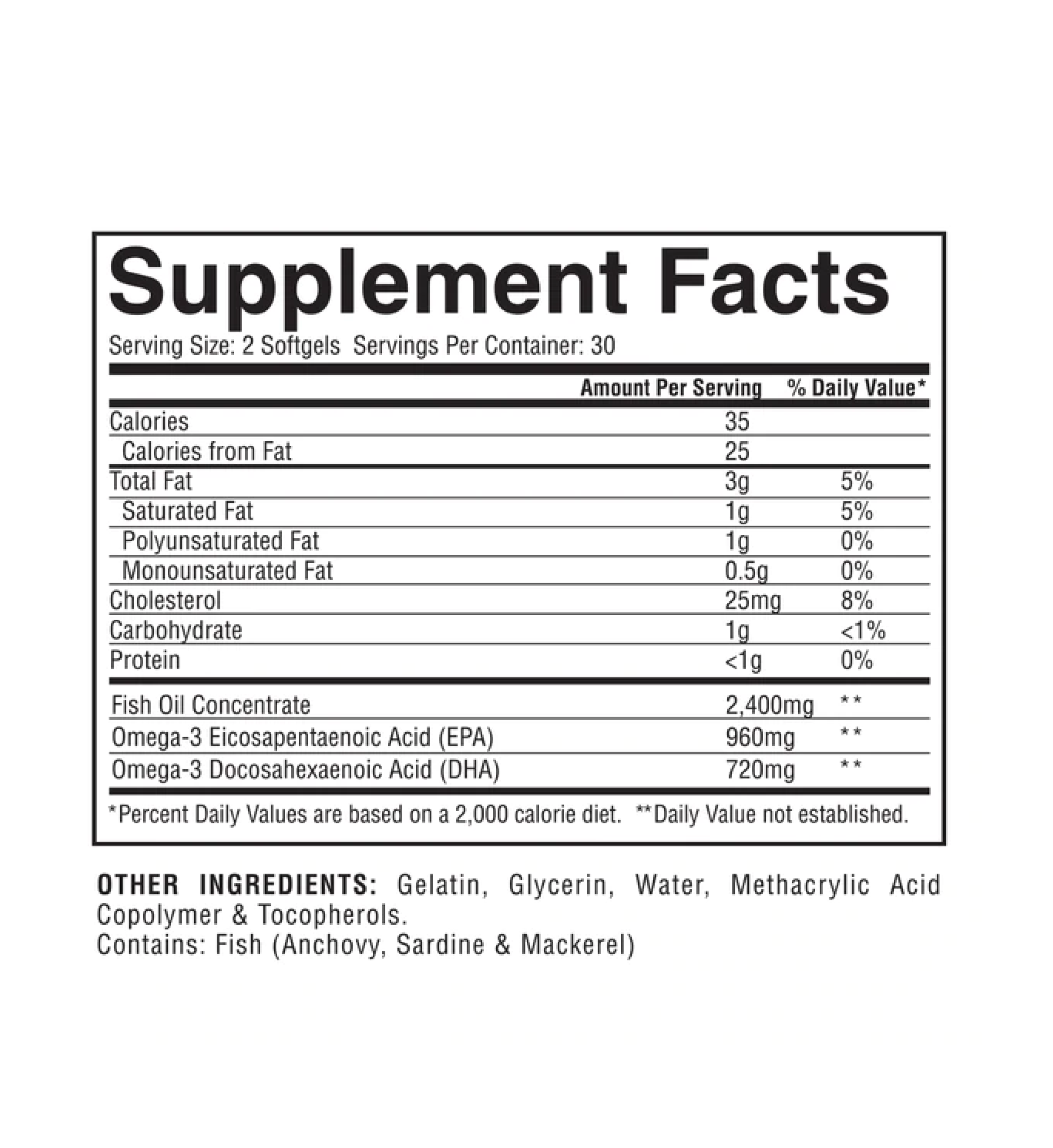 two capsules with a high concentration of 2,400 mg of premium fish oil concentrate, including