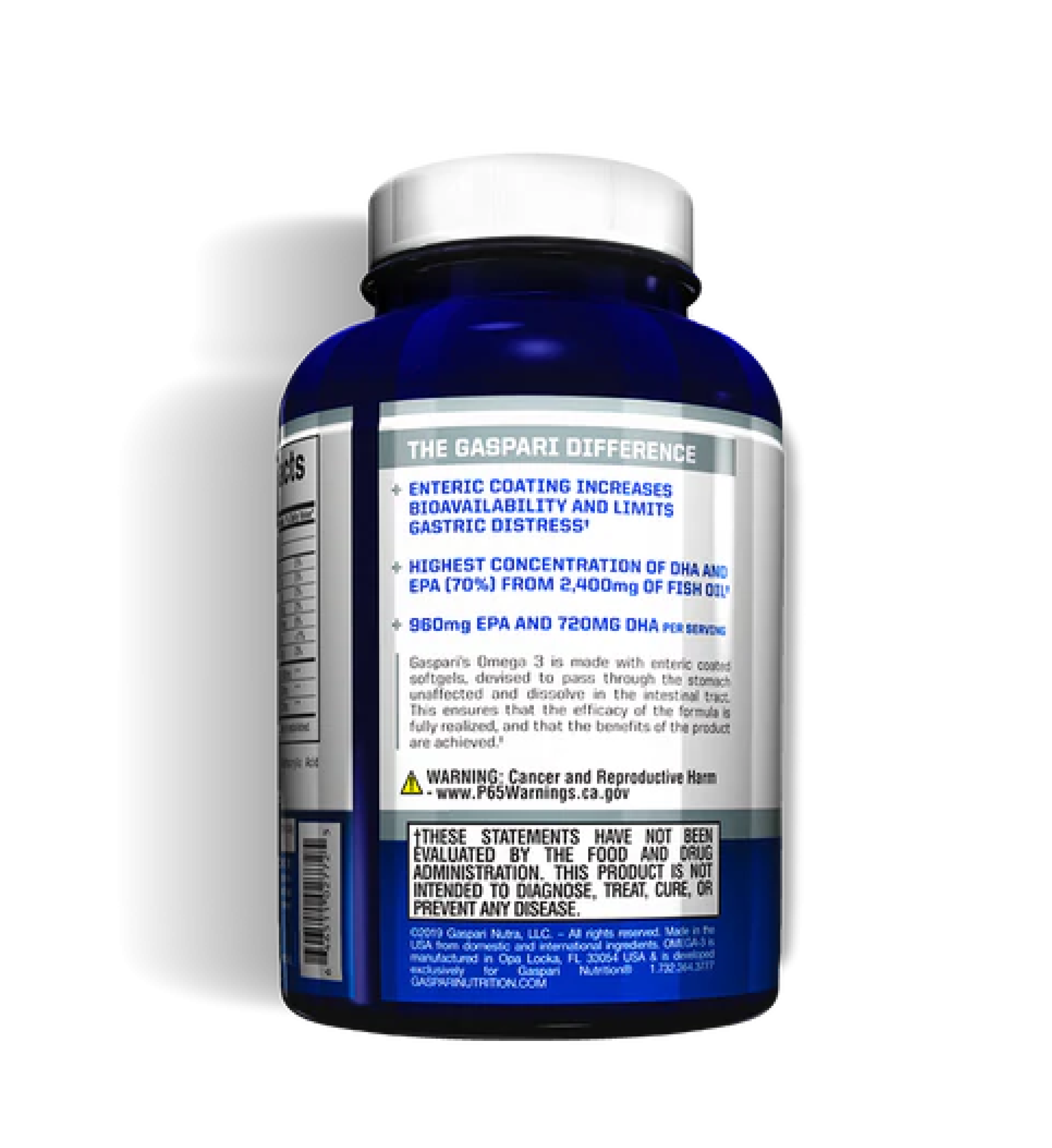 Gaspari’s Omega 3 is made with enteric-coated softgel capsules. Most Omega-3 products