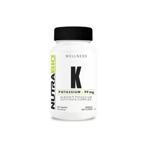 NutraBio Potassium 99mg V-Caps uses a unique, patented form of potassium known as potassium glycinate chelate, which consists of the mineral potassium bound to the natural and more bioavailable L form of the amino acid glycine to give maximum assimilation and absorption. Amino Acid chelated minerals are highly bioavailable, meaning they’re readily absorbed by cells.