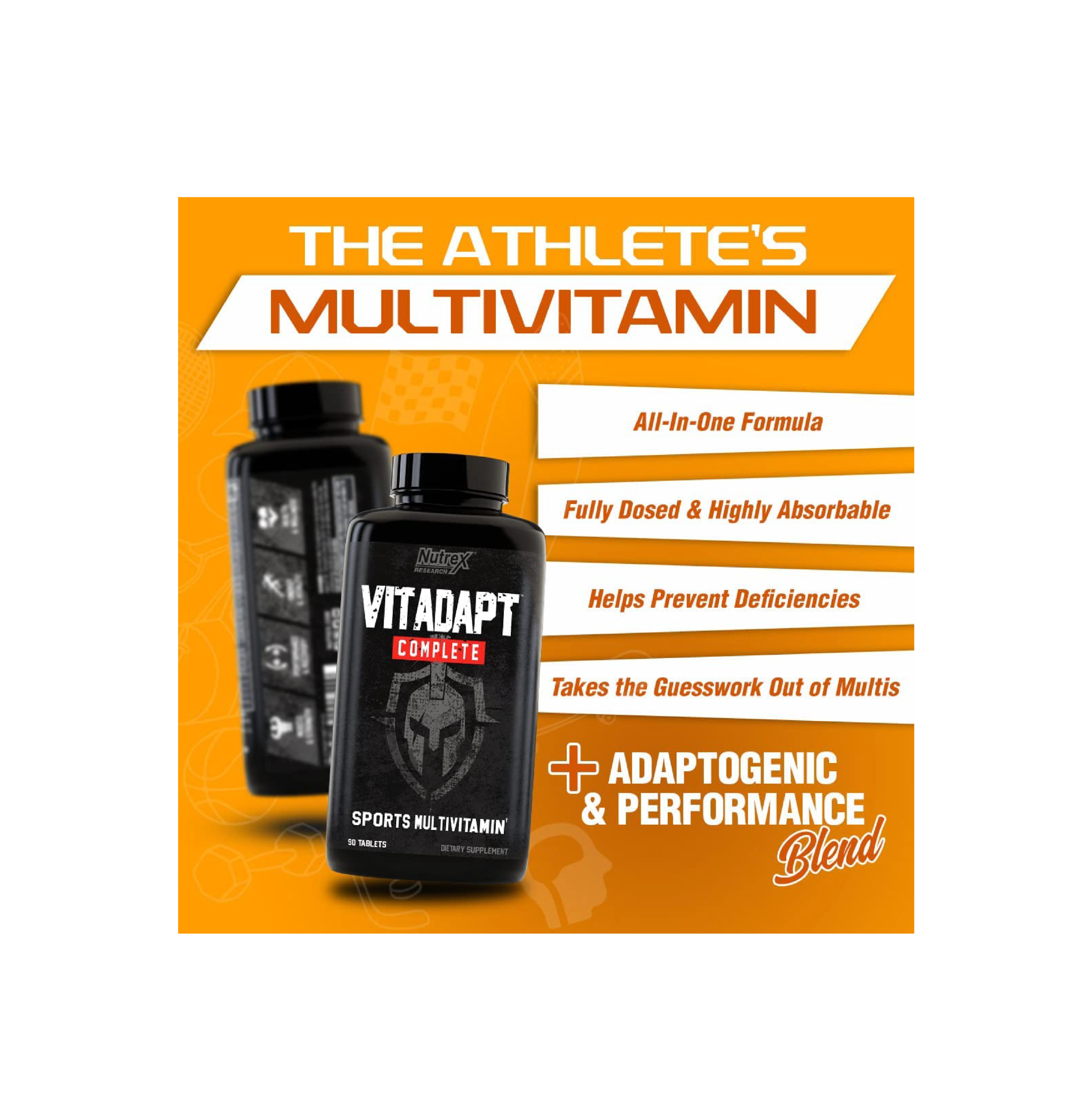 Stop wasting money on ineffective multis and start investing in an effective sports multivitamin. One that provides you, the hard-working athlete, with everything you need to support and increase performance, recovery, and muscle growth. Pick up a bottle of VITADAPT today.