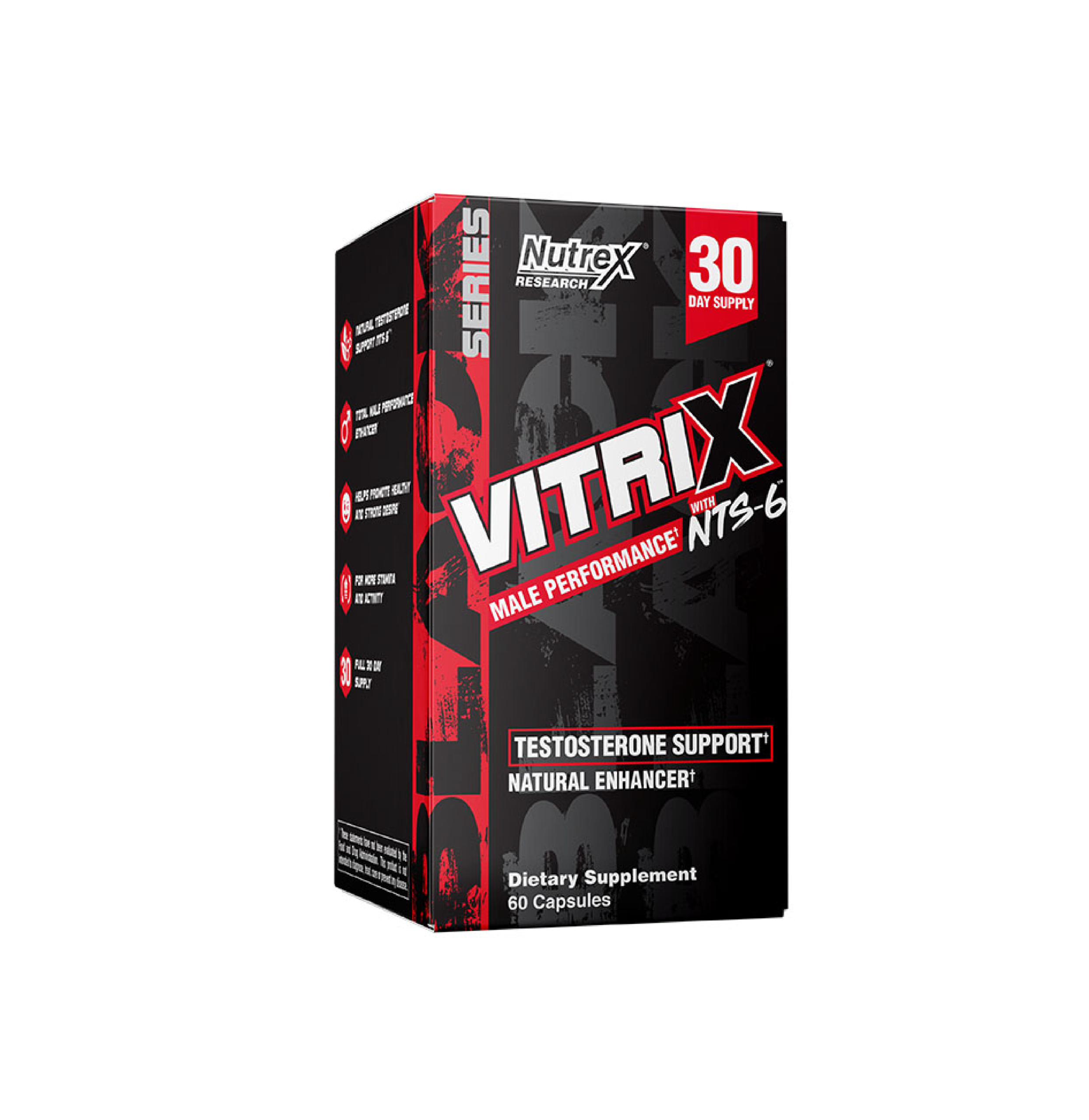 At the heart of VITRIX’ effectiveness lays our very own NTS-6™ formula. This unique, proprietary combination of carefully selected all-natural phyto-compounds works with the male endocrine system to help support healthy testosterone levels and strong libido function.